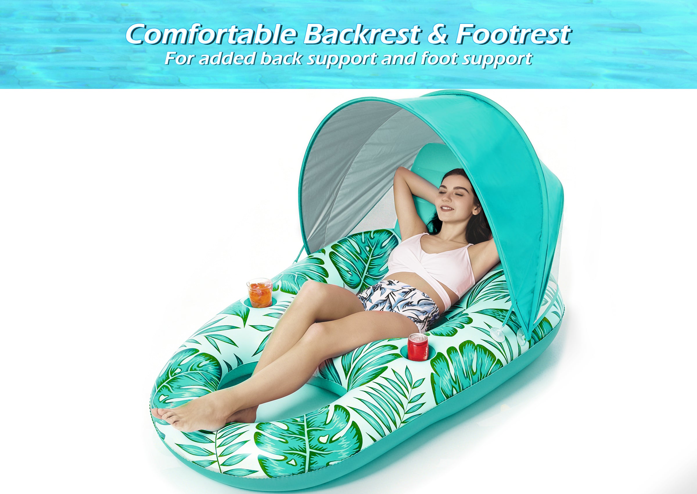 Inflatable Pool Float with Taller & Removable Sun Canopy - The canopy is taller, offers a better view and ultimate comfort. Well-ventilated and UPF50, has great airflow to stay cool and comfortable. Thicker support poles for enhanced stability. Patent pending design. Comfortable Backrest and Footrest - This inflatable pool floats...