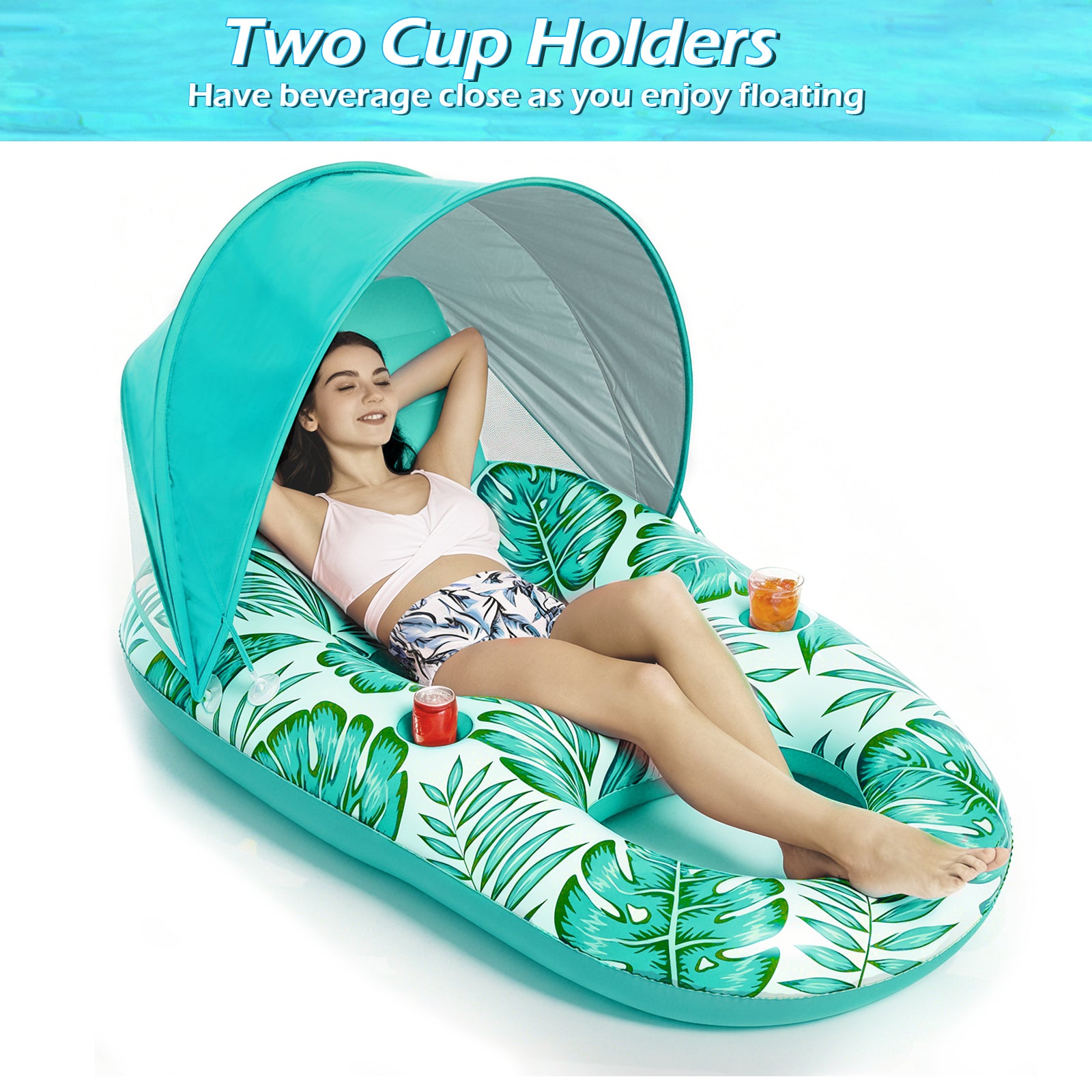- Pool Lounger Float with 2 Cup Holders - The pool floaties designed with built-in cup holders. You can always have your beverage as you enjoy time on the floater.